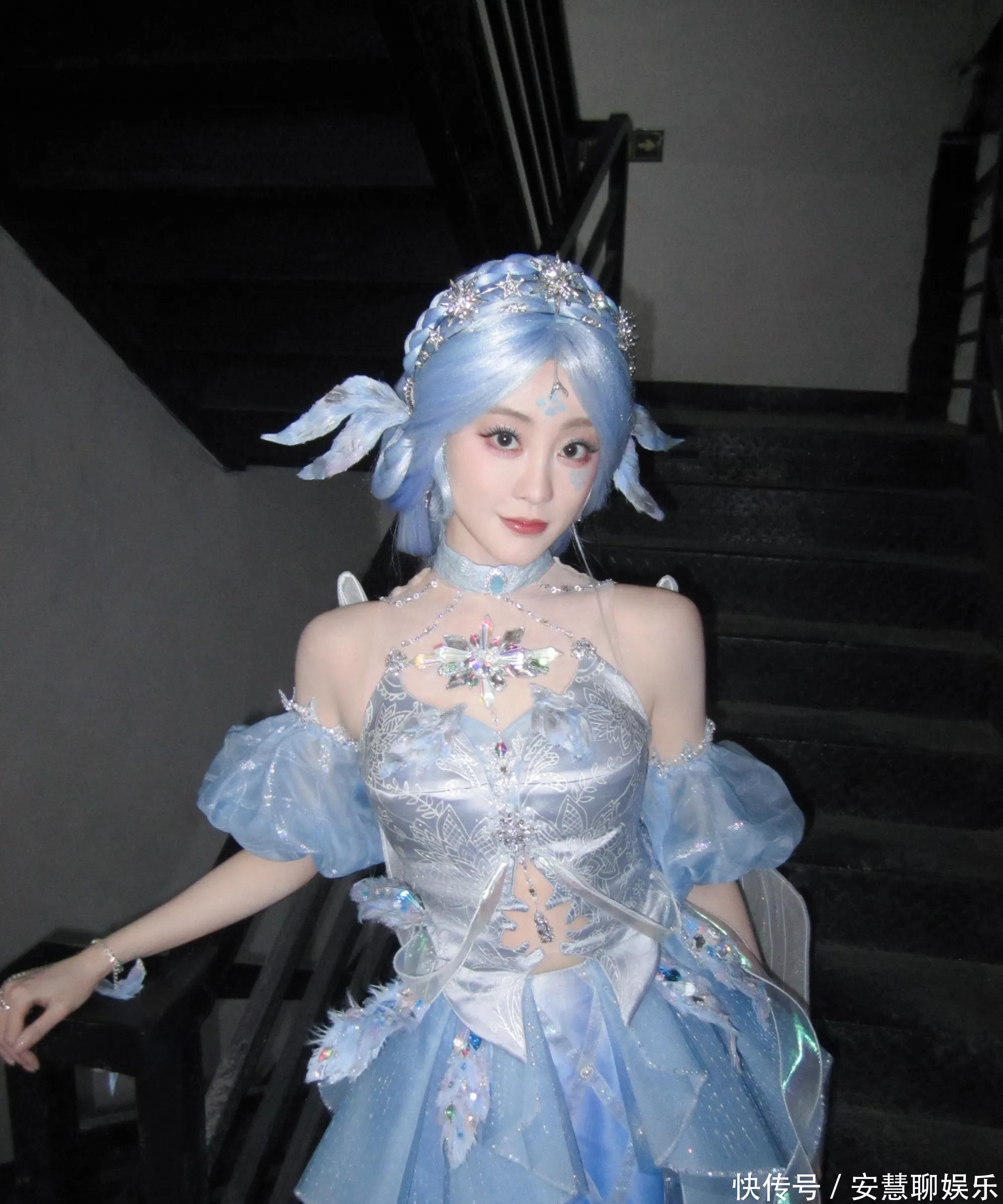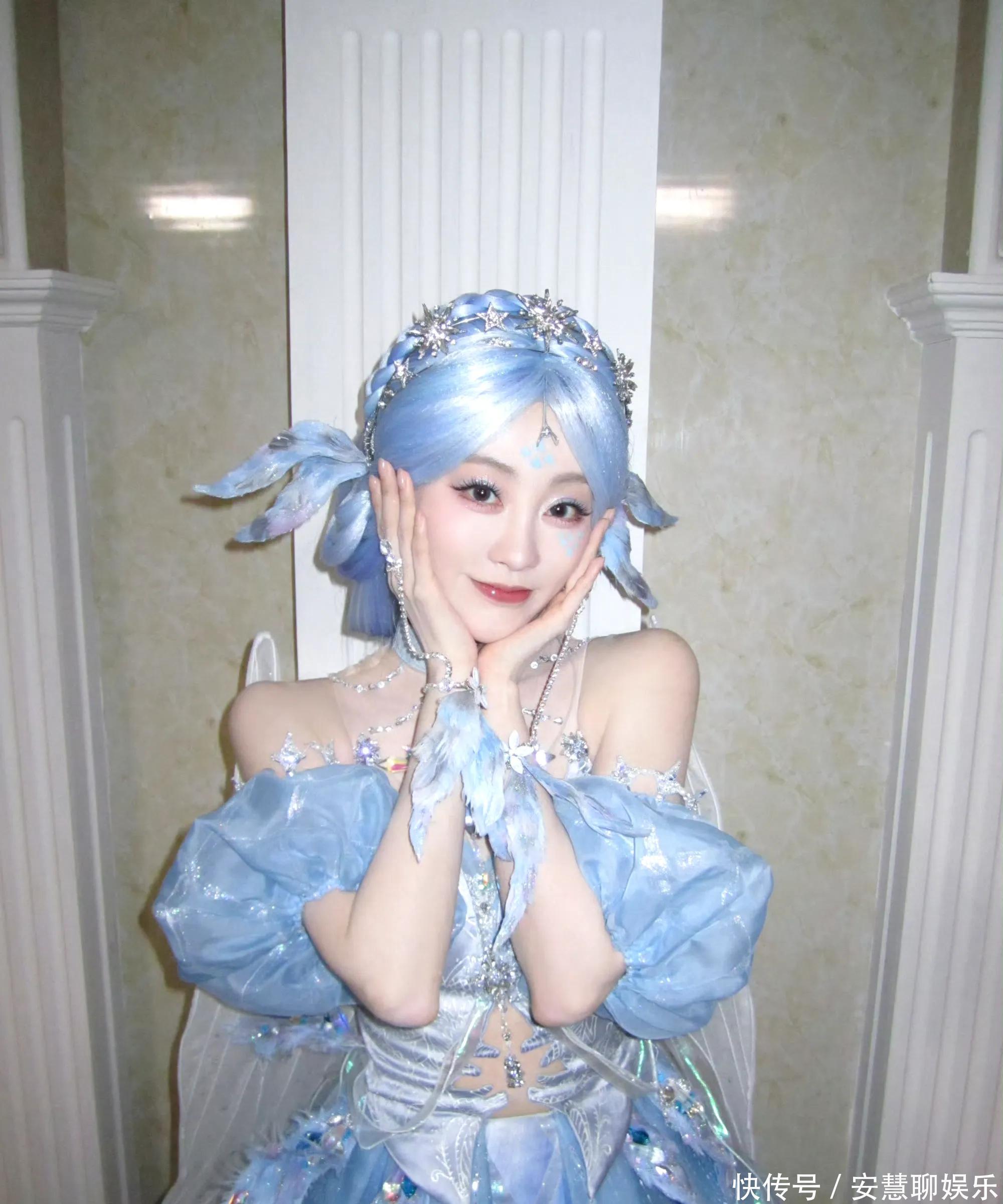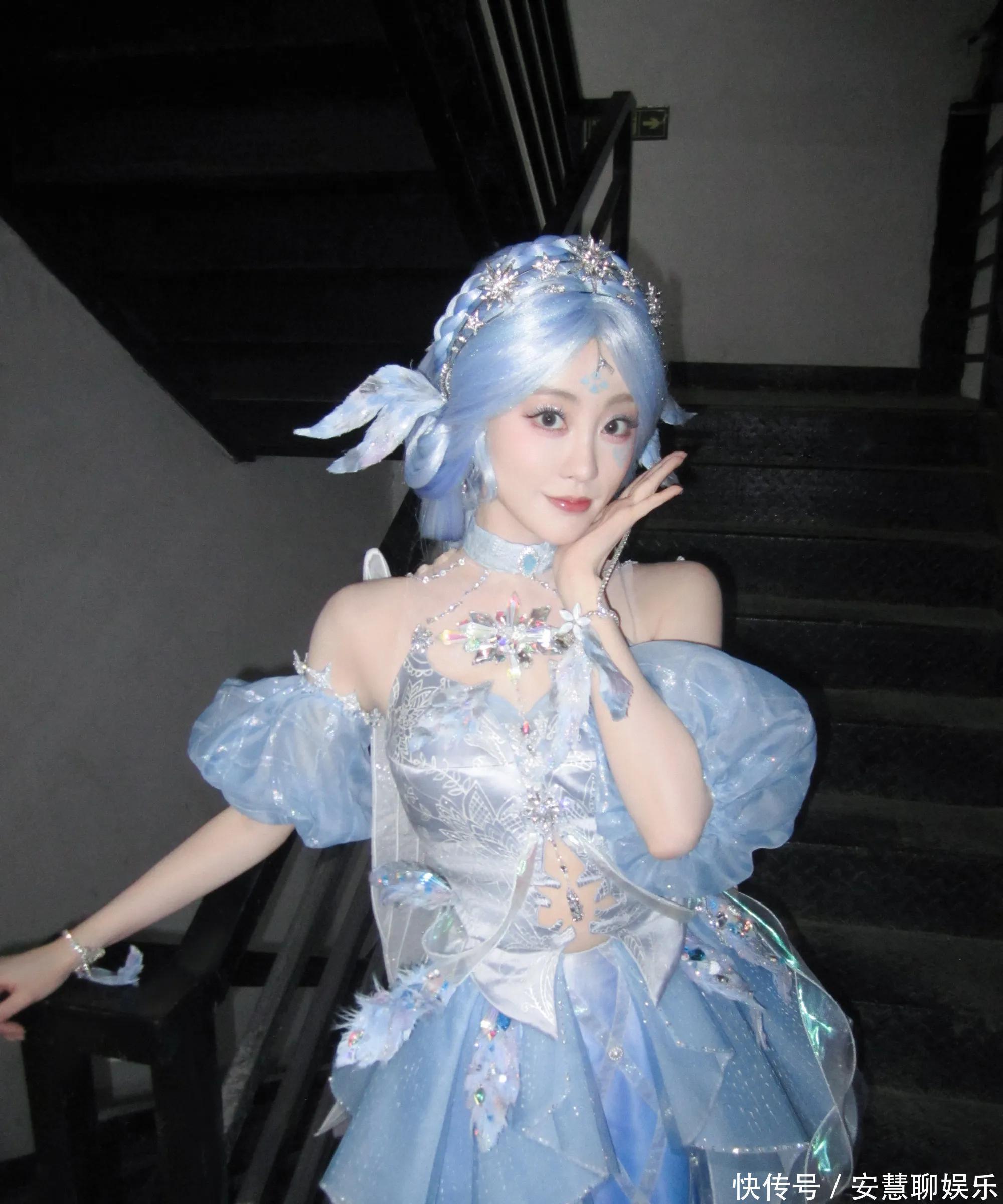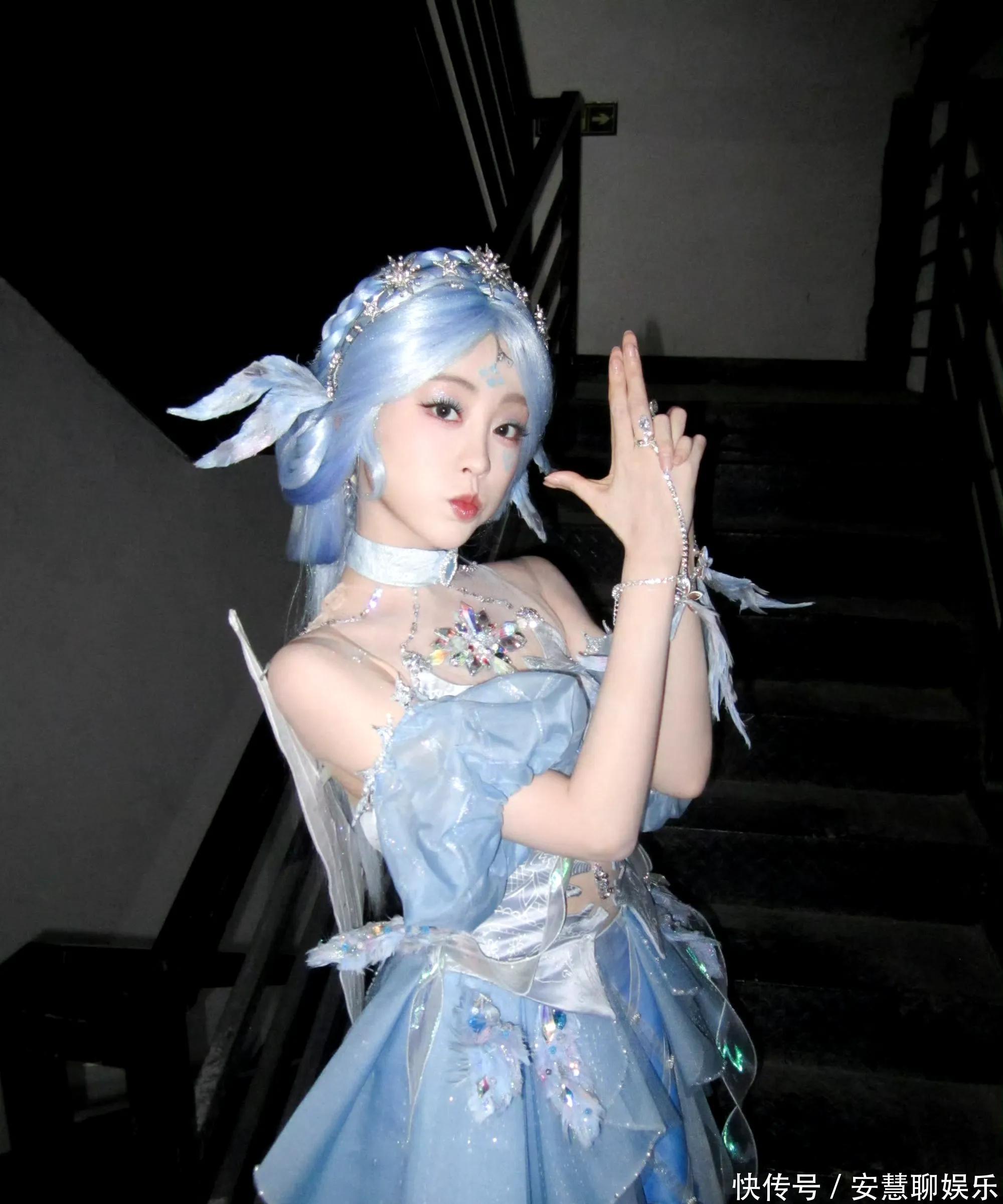 相片中,祝绪丹以寂寞浅蓝色系的Cos造型亮相,