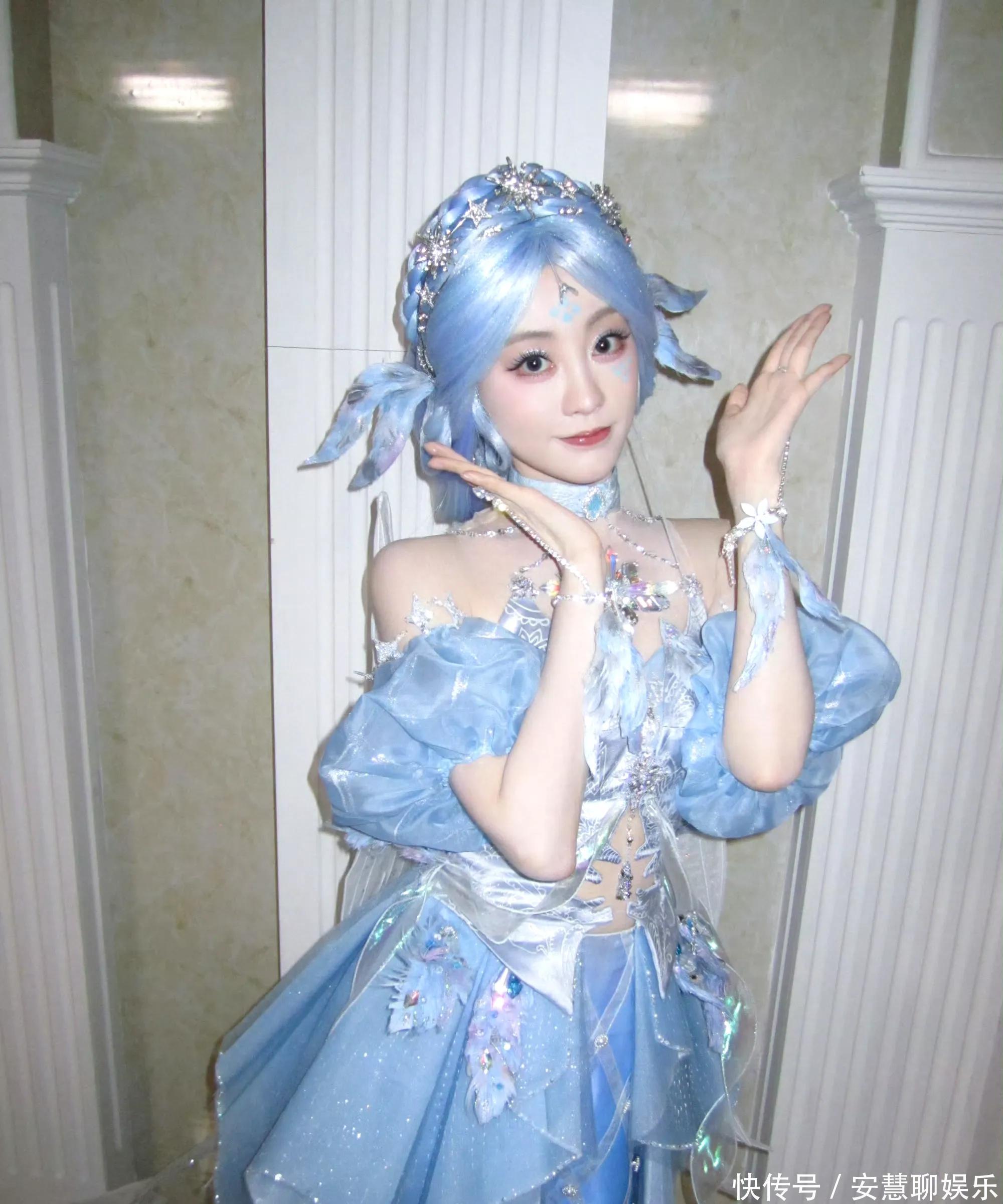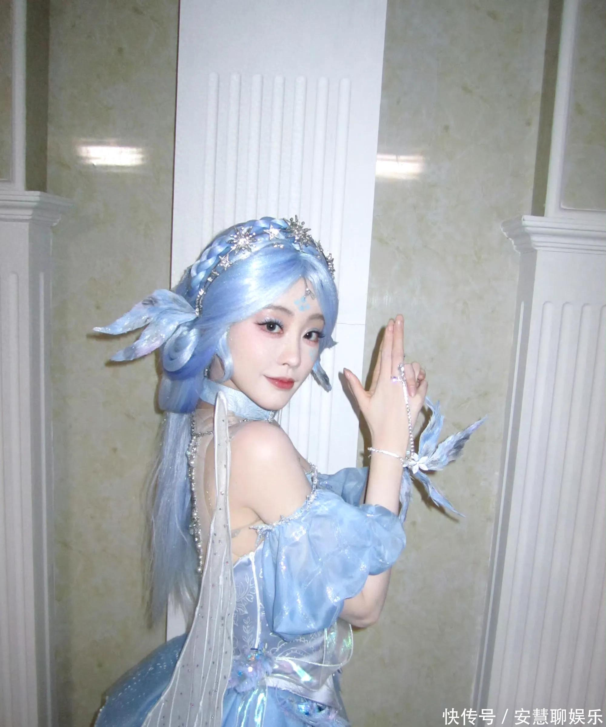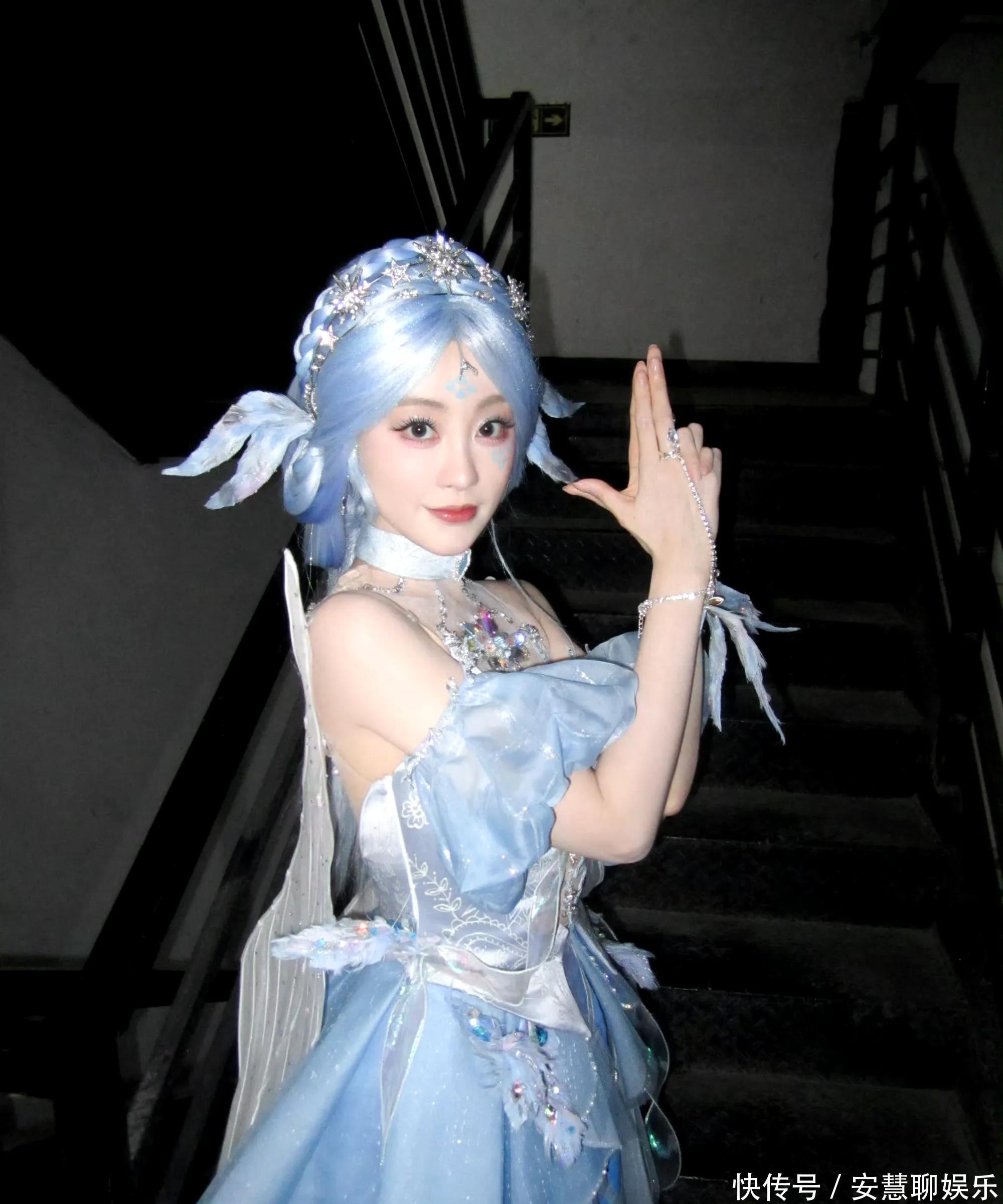 相片中,祝绪丹以寂寞浅蓝色系的Cos造型亮相,