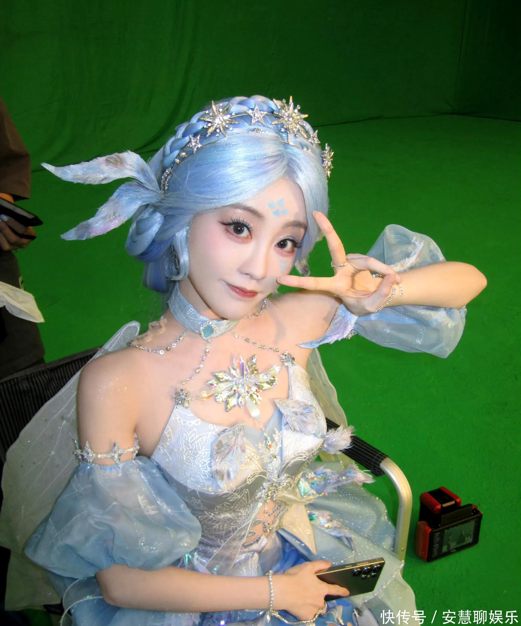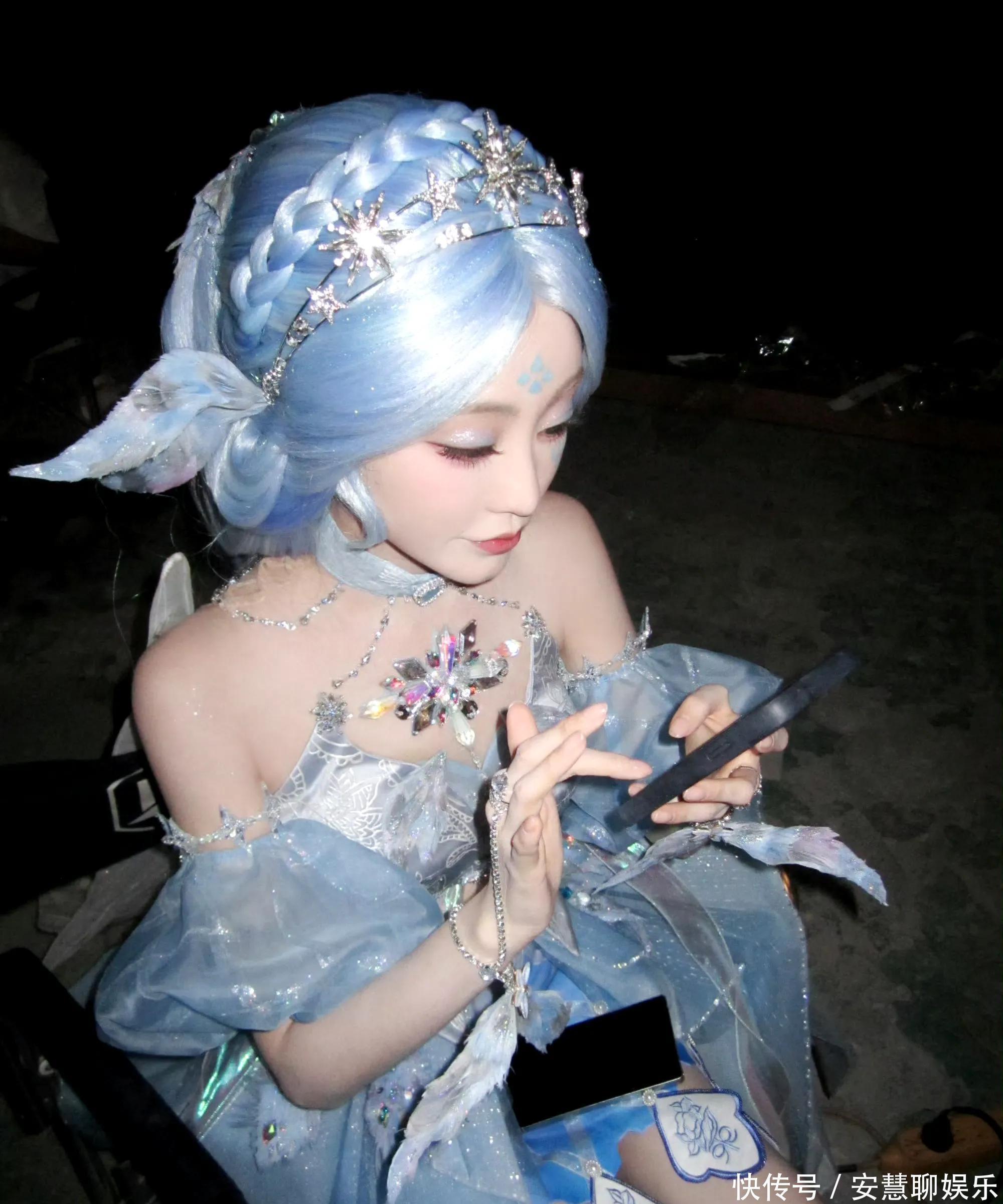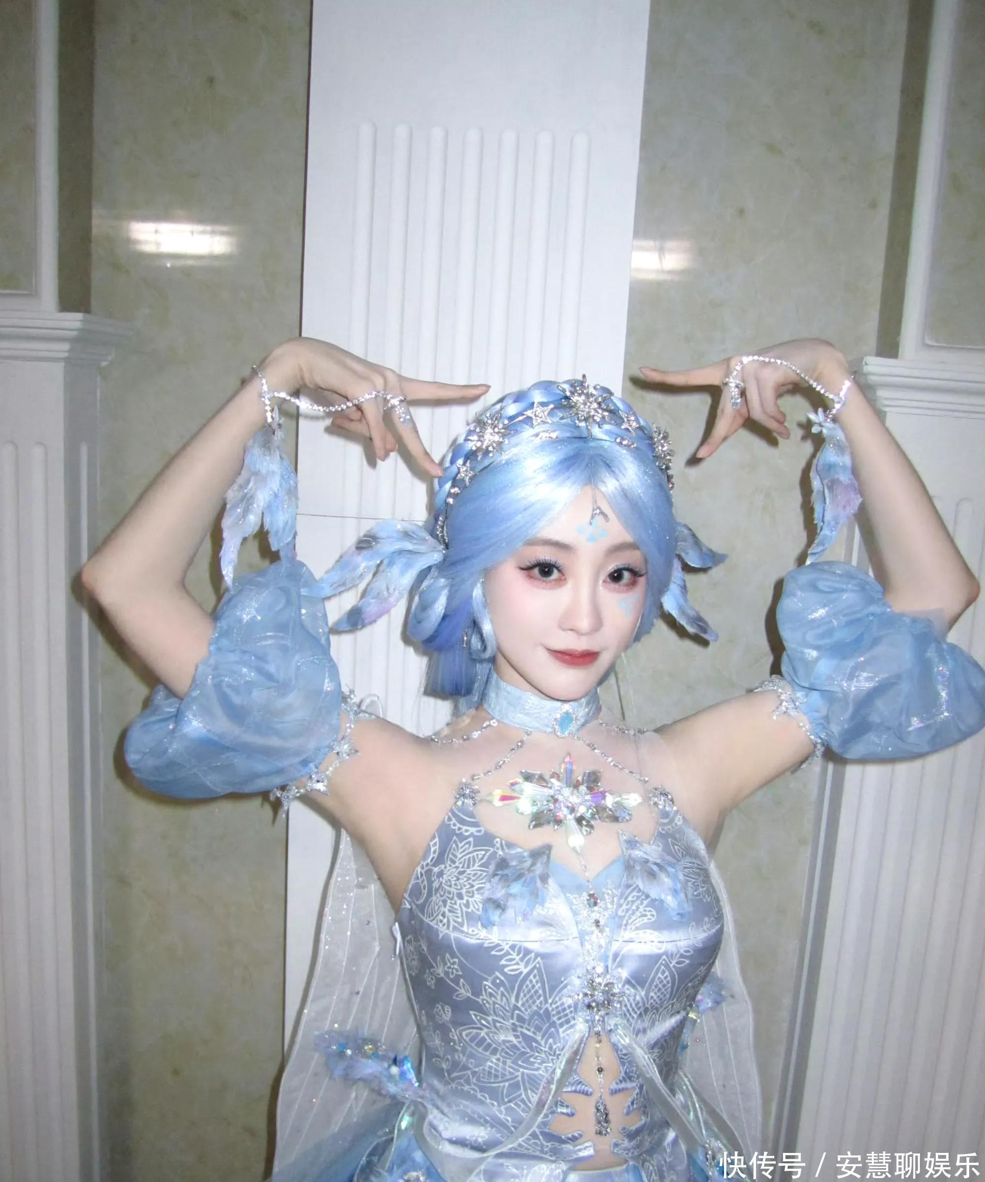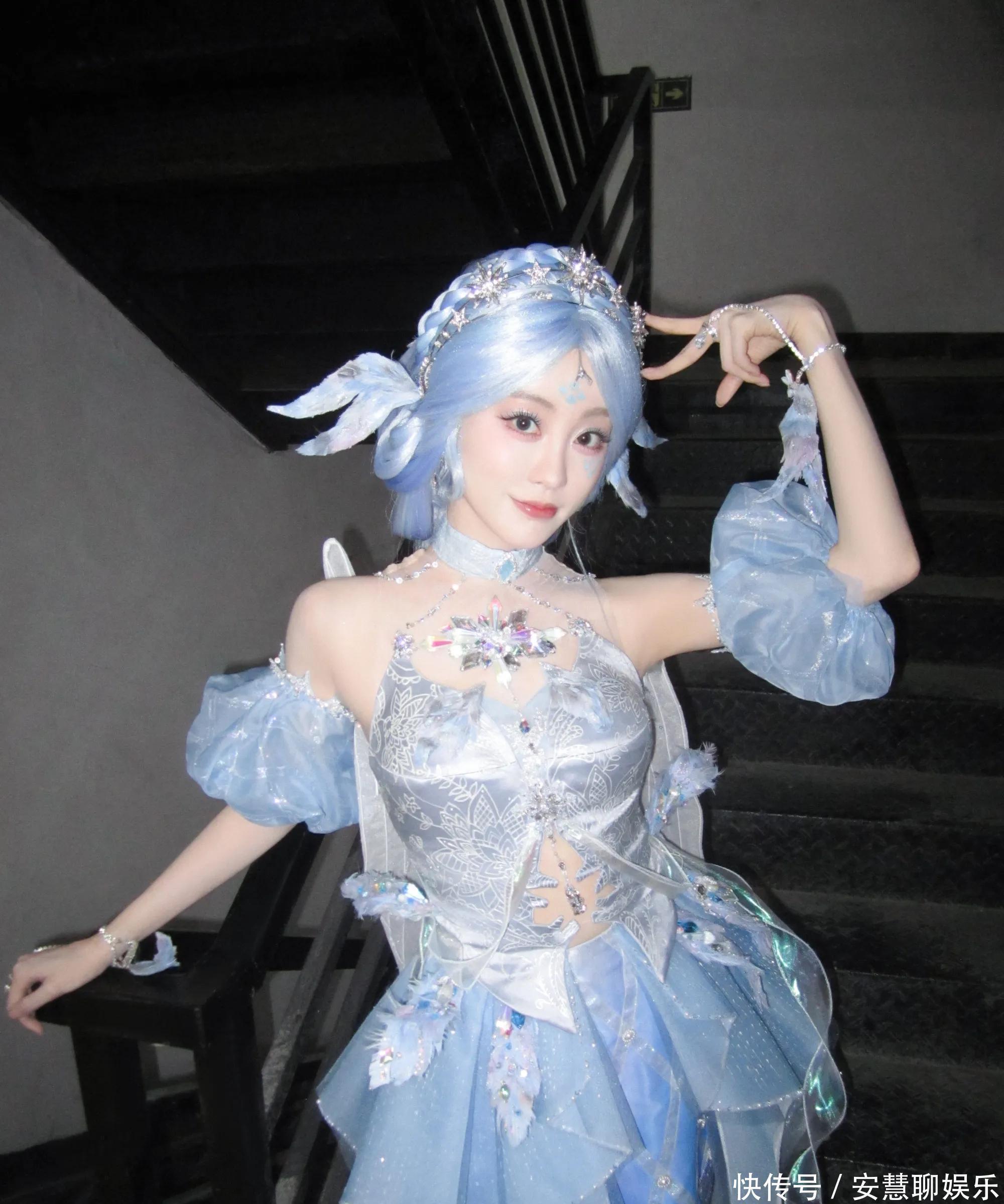 相片中,祝绪丹以寂寞浅蓝色系的Cos造型亮相,